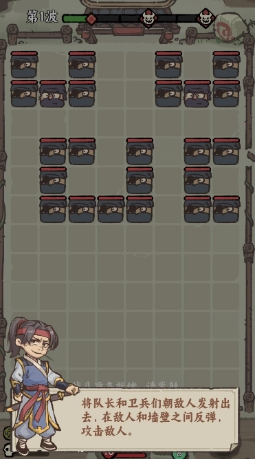 3、将队长和卫兵们朝敌人发射出去,在敌人和墙壁之间反弹,攻击敌人