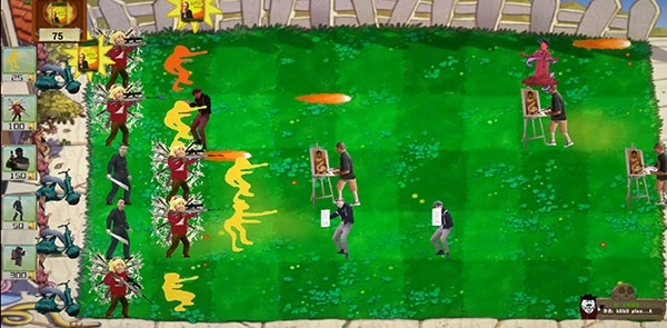 2、可以看到熟悉的植物大战僵尸场景画面,不同的是右侧的僵尸们都变成了全明星。