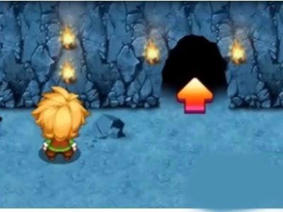1、首先从入口进入,右转后向上直走,再左拐找到火把机关,返回入口,左转,破坏掉岩石后上走进入洞口后直走,进入洞;