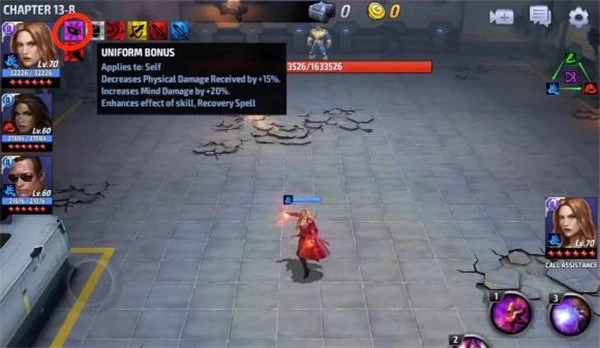 2、buff触发,图标亮着就是已经触发,暗着表示没有触发,比如格纹蜘蛛侠当触发回避时,该制服红利触发,图标点亮。
