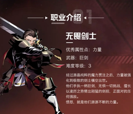 游戏中主要的强力职业是无畏剑士,他们使用由纯魔力锻造的巨剑作为武器。这种巨剑威力巨大,能够轻易击破怪物的防御。因此,无畏剑士在战斗中具备极强的攻击力,这种特性在其技能中得到充分体现。