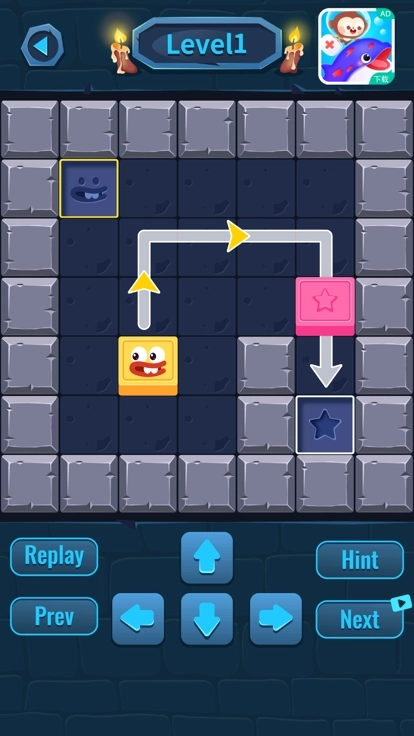 1.简单轻松的操作方式,玩起来没有任何的难度,进行指尖的方向移动,将箱子推倒适合的区域。