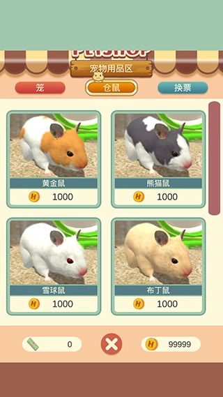 1.能够选择自己喜欢的仓鼠在游戏中饲养,可以和仓鼠自由的互动。