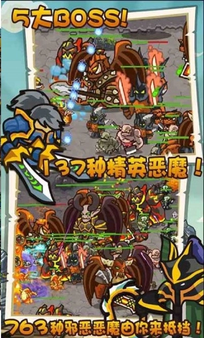 组成玩家自己喜欢的战术来应对由5个恶魔BOSS领导的数百种形态各异恶魔组成的死灵军团进攻。