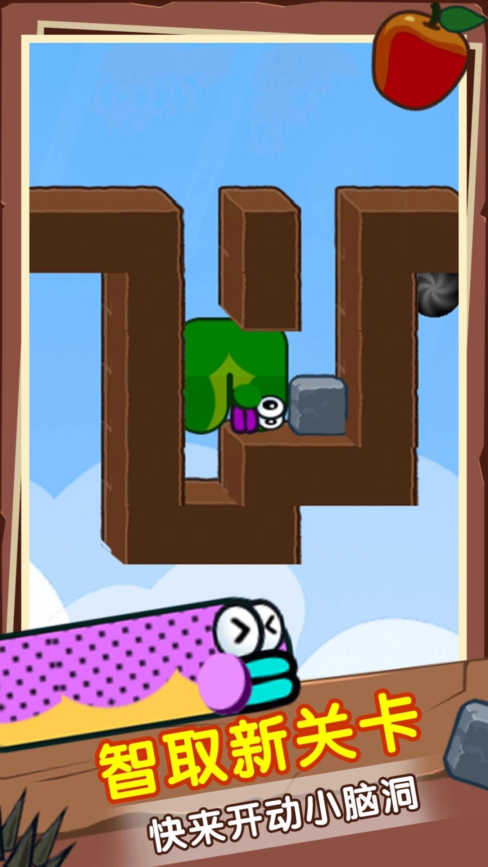 2、控制一条蛇绕过复杂的地形,到达远处的黑洞。吃一个苹果会让你的蛇长个单位。明智地使用它。