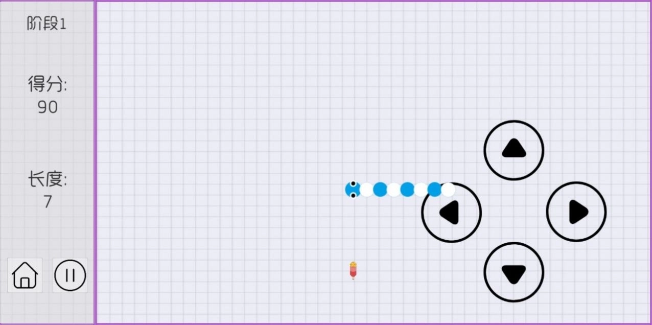 3.控制摇杆走位你的小蛇,吃掉地图上彩色的小圆点,就会变长。