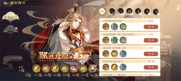 任务分为主线,经验和教学三种。 大家先做主线任务,卡了再看其他任务,基本很简单。 18级才开始开启日常任务,活跃达到30、60、90和120时可领取活跃宝箱。 活跃宝箱总计40金叶子、30体力、25000铜钱和30000经验。 每天日常记得肝满! 六、其他名士获取