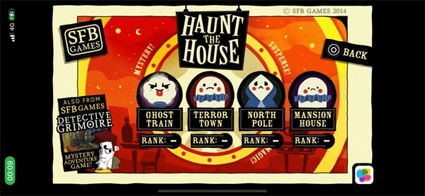 手游版本可以选择四个场景,第四个“MANSION HOUSE”就是在游戏网站最常见的复式大楼。点击不同的小幽灵会触发不同的音效,有唧唧叽的,也有吱哇乱叫的。游戏里的背景音是悠闲愉快的欧洲古典纯音乐加上国外交流语言的白噪音,客人被吓时的声音听着也很舒适,能满足人的恶趣味心理。