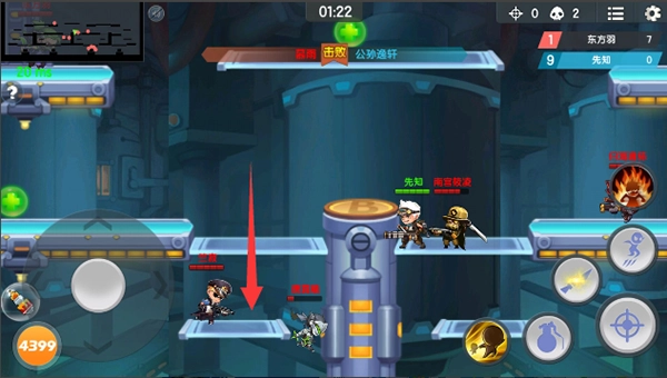 玩家交火时,地图中的小台阶能保护玩家躲避子弹攻击,这种设计在个人模式中大量出现。对于某些玩家来说,常常会因为敌人在小台阶上下移动,打不到他而苦恼。这时你可以用刀来对付他,刀可以打到小台阶上的敌人。