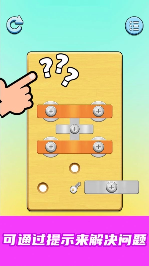 1、游戏的目标是通过拧螺丝将各种形状的螺丝钉固定在指定的位置上。