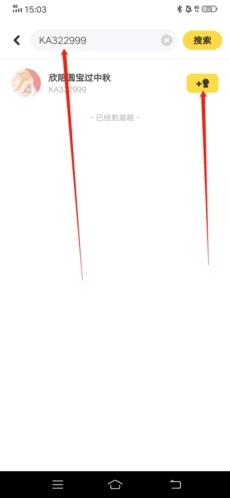 2、接着把想要添加好友的ID或昵称输入,点击搜索,最后点击搜索出来的用户右侧的“+”按钮,便可发送好友申请。