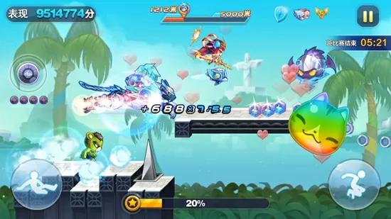 谁能跑出更远的距离、谁能获得更多的金币……在不断的竞争中提高自己的成绩,在互相的比拼中超越对方,好友之间的成绩比拼是游戏最吸引人的地方,没有之一!