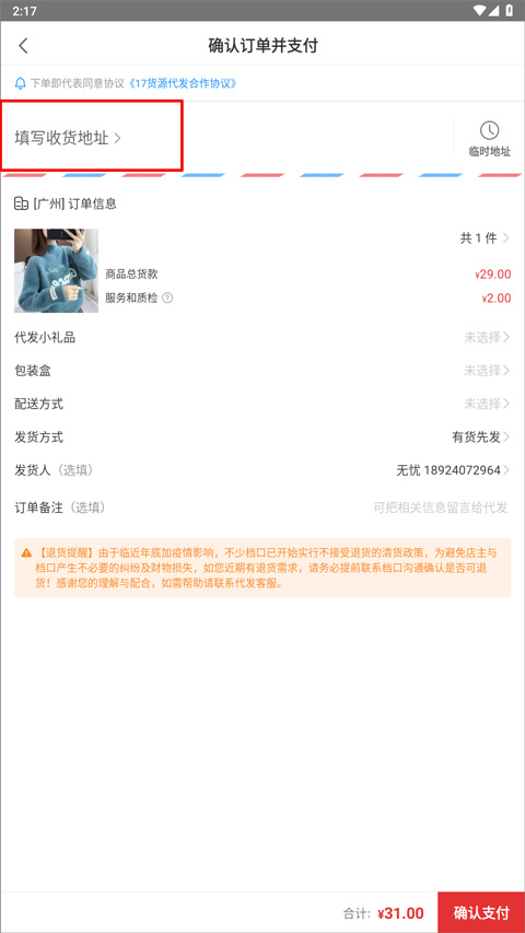 17货源网怎么下单?