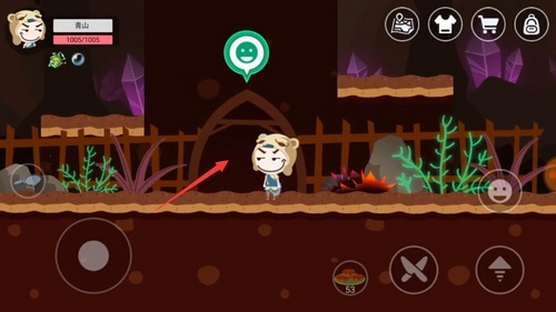 1在我们基地右侧,进入第二个区域时会碰到饭团,得知它的兄弟在前方售卖炸弹,于是我们朝右去寻觅它的兄弟。