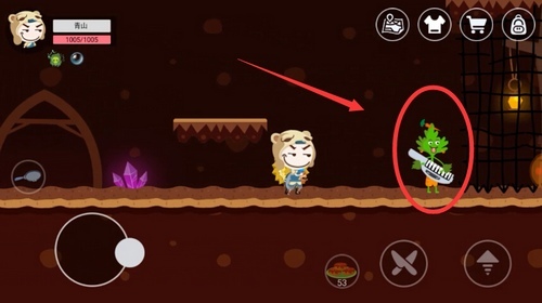 6、踏入洞口后,朝右行进,击败香菜boss。借助悬浮台阶进行上下跳跃,以此躲避香菜boss的攻击。与此同时,运用背包中的各类菜肴获取buff加成,亦或是直接使用饭团炸弹展开轰炸,如此便能战胜香菜boss。成功打败香菜boss后,可得到麻辣香菜冰淇淋的食谱,依据这份食谱,我们就能够制作出麻辣香菜冰淇淋。