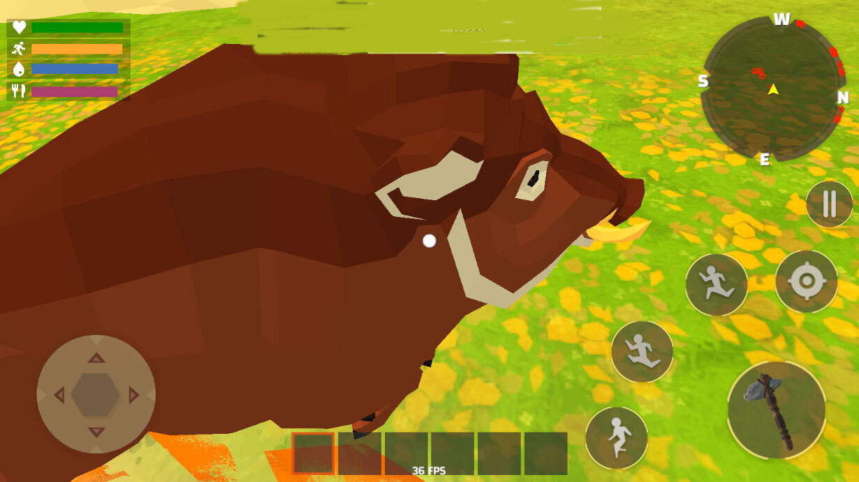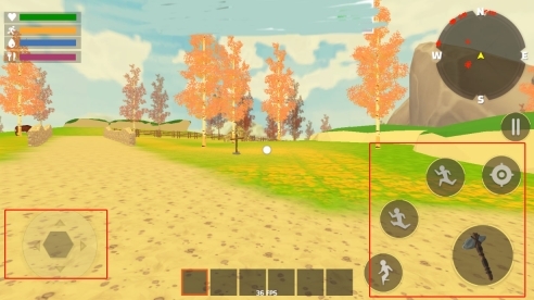 2、左边控制人物的移动,右边则是一下生存需要用到的奔跑、击打、跳跃。