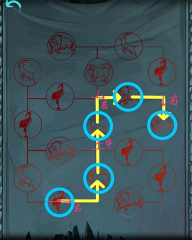 拾取左边部件→返回爷爷棺材所在之处→将部件安装在盒子上→依次通过狼草(草在上、狼在下)、牛鹰,之后狼在上接住草→拿取火柴→向前行进并点燃蜡烛→来回走动→依据墓碑上的提示按顺序输入:153423→获取2个红玉棒→爬上树→放置2个红玉棒→拿到玉蝉→放置玉蝉→再拿取→完成