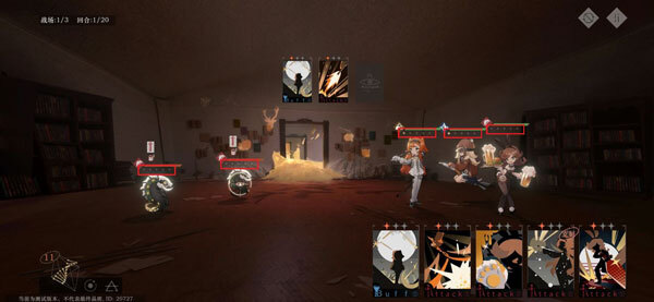 每回合的行动次数依据在场人数来确定。从图中可知,我方当前场上共有三人。因此本回合我们能够行动三次。每次进行使用卡牌或者移动卡牌的操作,都要消耗一点行动点。