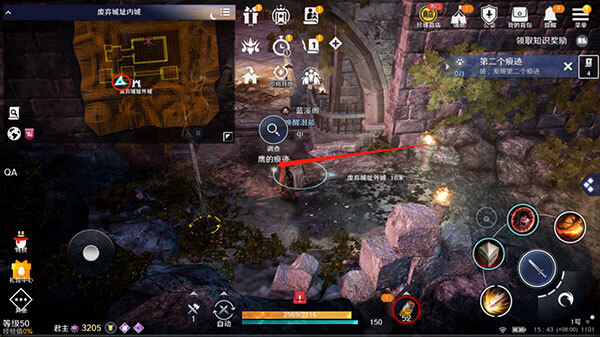 我们需要前往【废弃城址内城】寻找小鹰的踪迹。第一个痕迹很难注意到,因为它藏在boss入口的左后方,再加上边上的野怪会自动攻击咱们,所以很容易就忽略掉。