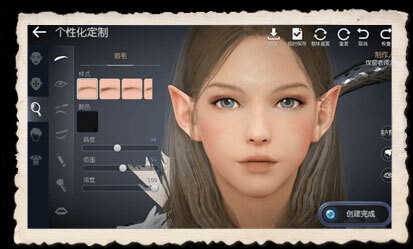 妆容选项下可以进一步优化角色的脸部特征,例如眉毛,无论是喜欢流畅的柳叶眉、韩式大平眉、还是高挑的欧美野生眉,眉毛的颜色、高度、范围和浓密可以进行任意改变。