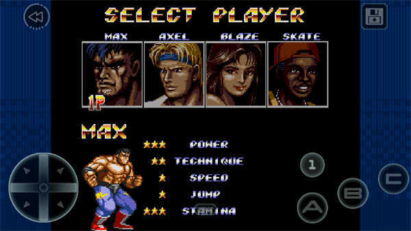 1可操作角色主要分为两大类:常规角色涵盖阿克塞尔、布雷兹、阿当、马克斯和扎恩这五位;隐藏角色则有希瓦、布衣、丽莉以及潭龙(其原型源自拳皇系列的“天狗”)四位。解锁方法为:在计分画面累计出现1次、2次、3次、15次后,当角色战败进入续关阶段时,就能选择相应的隐藏人物登场参与战斗。