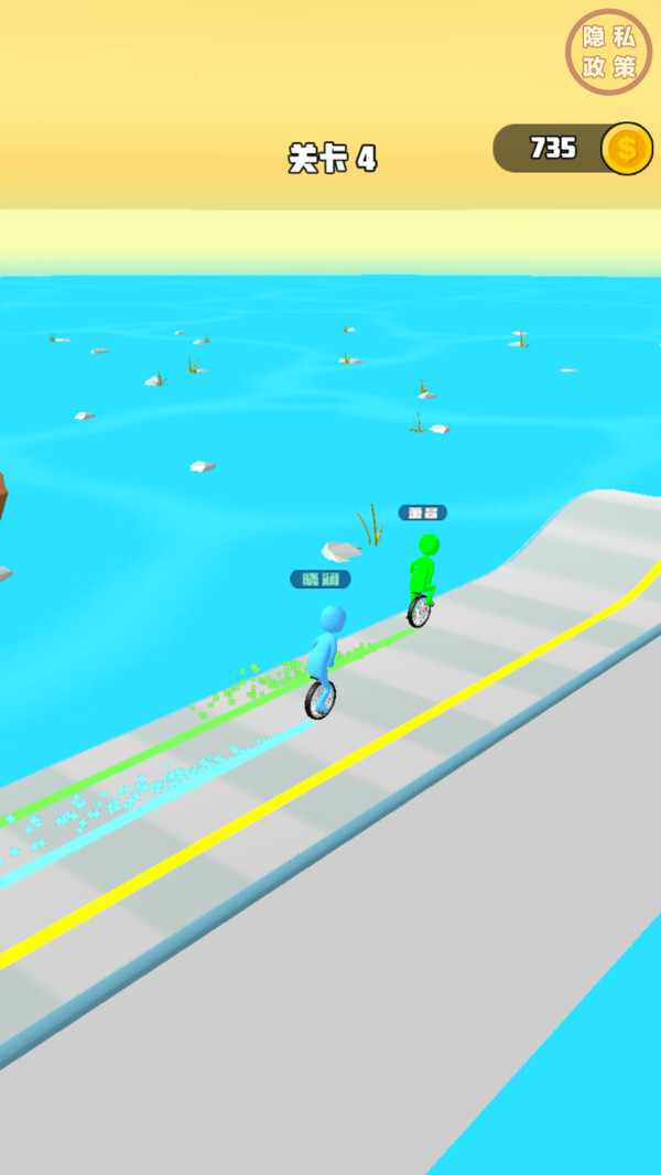 3、巧妙避开关卡里的各种障碍物,维持骑行的节奏,顺利到达终点就能获取奖励,开启下一关。
