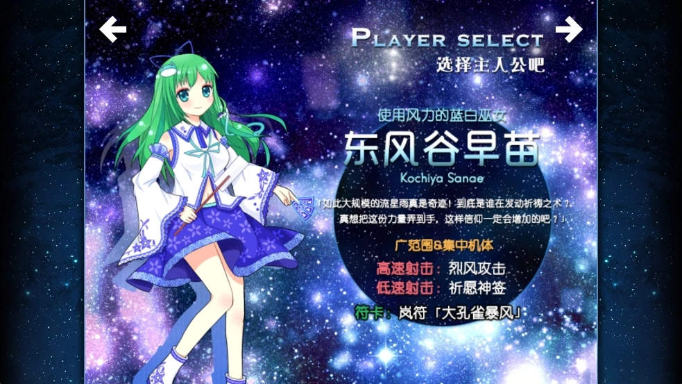 《东方夏夜祭》是一款二次元风格的弹幕射击游戏,玩家可挑战天狼星、大角星、织女星、牛郎星等不同难度模式,还能从四位美少女角色中任选其一。游戏过程中,玩家需灵活操控角色移动以躲避密集弹幕,同时释放各类技能攻击敌人,更有众多强力BOSS等待挑战。