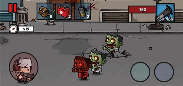 4、游戏采用了虚拟键盘操作,卡通横版打僵尸类型。
