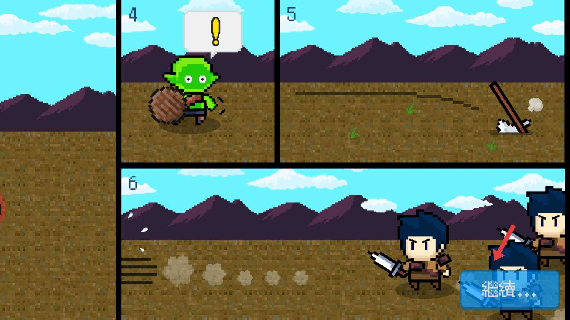 2、进入后会有剧情画面,展示哥布林等角色的故事场景,点击继续,推进到下一步的互动环节。