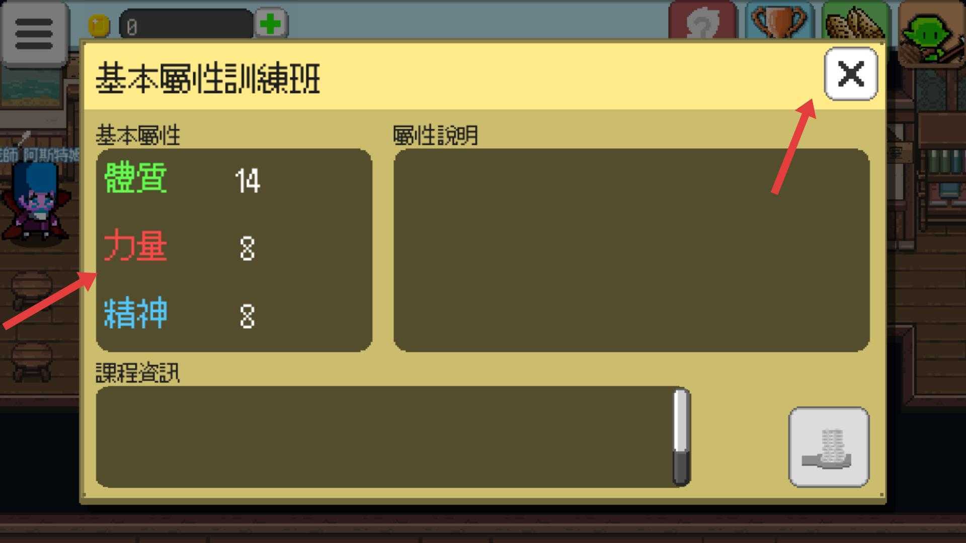 3、遇到询问是否上基本属性训练班的对话,选择确认后,进入对应的训练课程,提升角色能力。