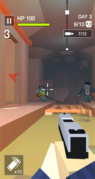 2、在不同场景中应对多只僵尸的围攻,精准射击,尽可能消灭更多僵尸。