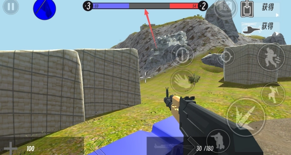 4、关注顶部战局分数条时刻掌握己方与敌方的分数差距。利用掩体掩护自身,击杀更多的敌人保持优势。