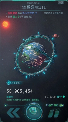 4、下一个星球的飞行会消耗大量能量。因此,在准备前往新星球之前,确保飞船的设备和科技都已满级。