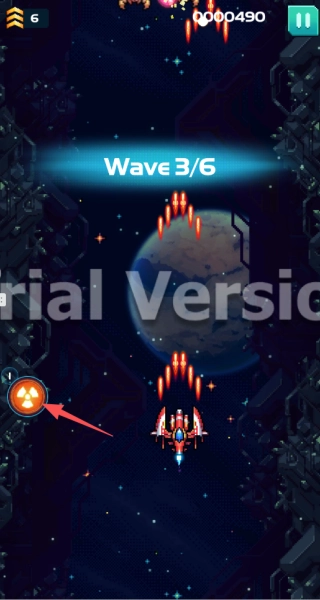 4、关注左侧的技能图标,等一波敌人密集出现时,及时释放技能,可大范围清除敌机。