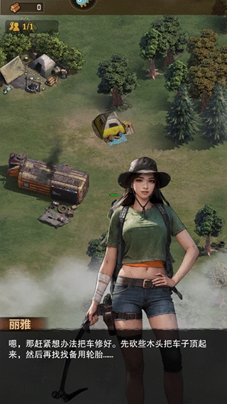 5、来到希望镇,点击地图上的树木进行伐木,点击废弃建筑进行修复,探索垃圾堆获取资源。