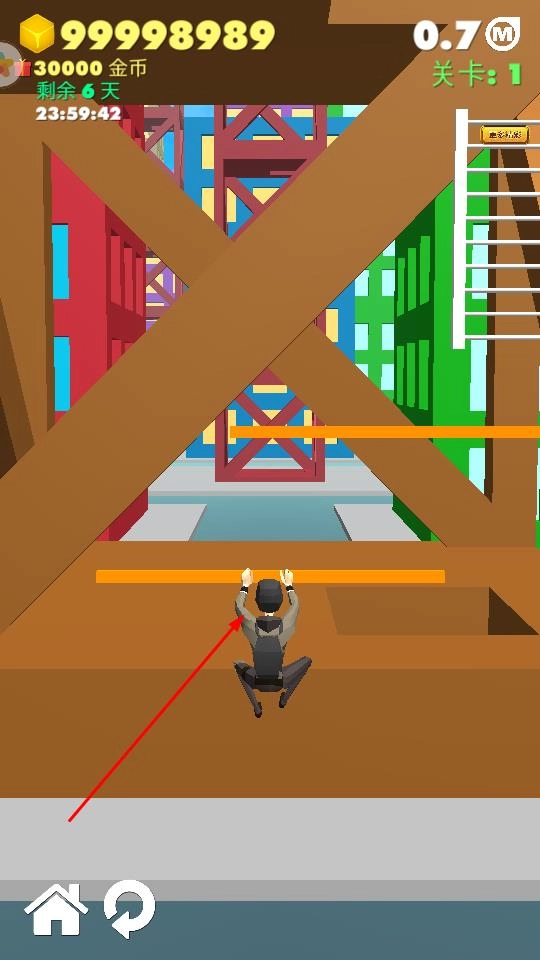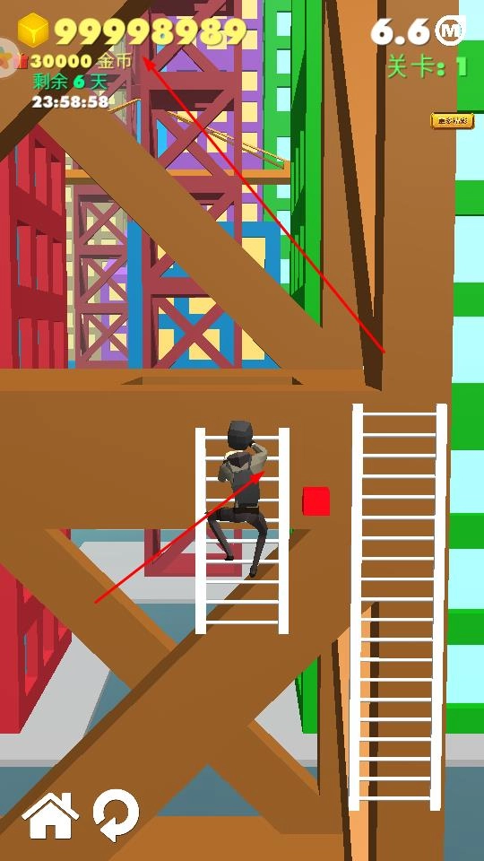 3、持续攀爬积累金币当前30000金币,提升攀爬高度与进度,完成关卡1的建筑攀登目标。