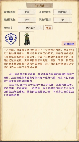 2、在角色创建界面,你可以自由搭配基础职业、性别和种族组合,并为你的角色取个响亮的名字。