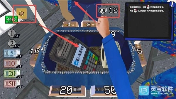 10、需要找零的钱显示在左上角,先左键长按10元的,在右键点击2元的,将找零的钱递给乘客。