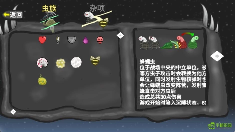 3、战斗中,你只需在下方窗口选择合适的虫子兵种并放置在场上。