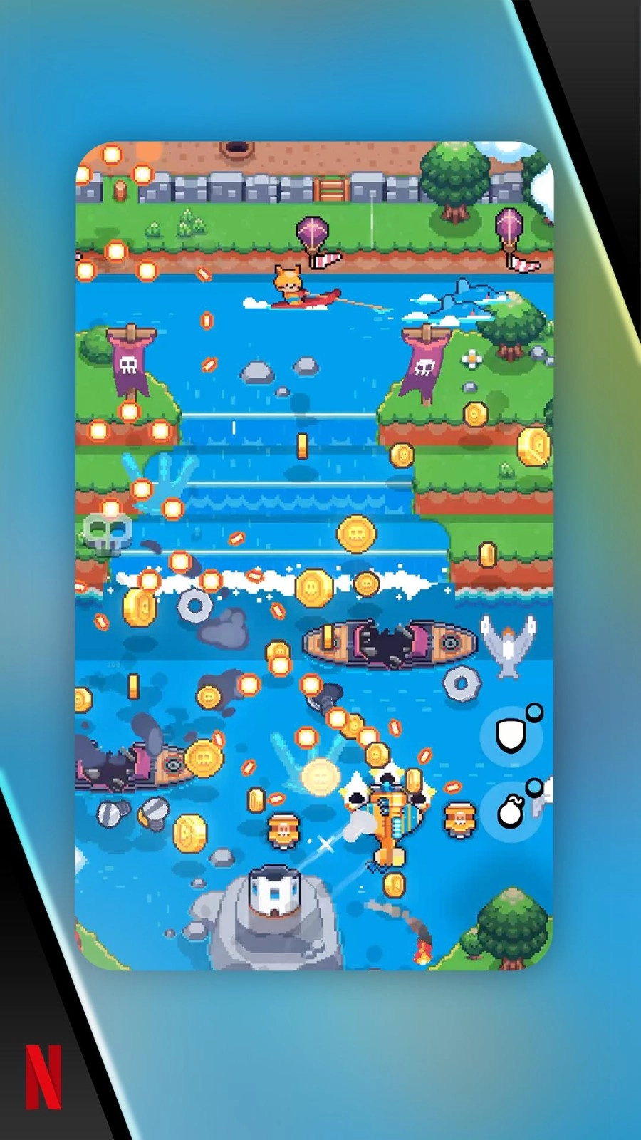 空中乱战(Skies of Chaos)是一款像素风格的热门飞行射击竞技游戏,玩家能够驾驶专属飞机对各类区域展开轰炸行动,众多轰炸任务都需亲自操控飞机完成。游戏包含多种不同场景,搭配绚丽的打击特效,玩家还可通过武装飞机提升战斗力,感兴趣的话千万不要错过。