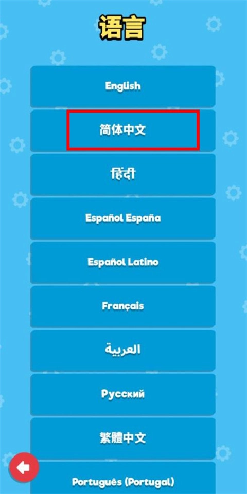 2、接着如下图所示:在语言界面中,选择并点击“简体中文”即可;