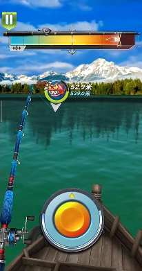 4、绿色状态可以放心的使用卷线轮进行鱼的控制。