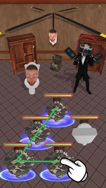战斗策略:玩家需要制定战斗策略,选择合适的马桶人角色战斗。不同类型的厕所人具有不同的技能和特点,合理安排队伍搭配,针对敌人的弱点进行战术部署。