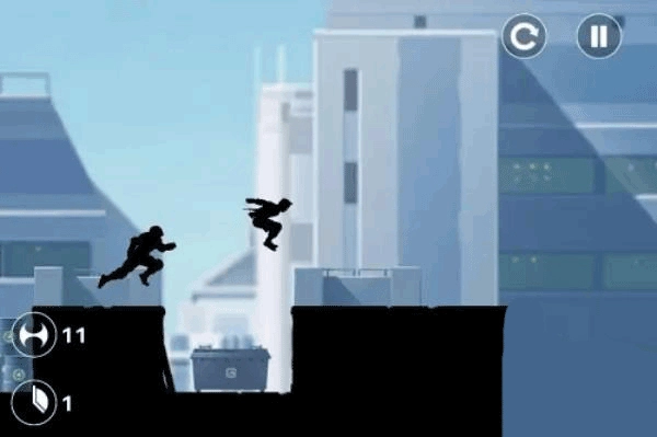 6、游戏将人物弱化成黑色的影子,让你的注意力集中在跑酷上面;