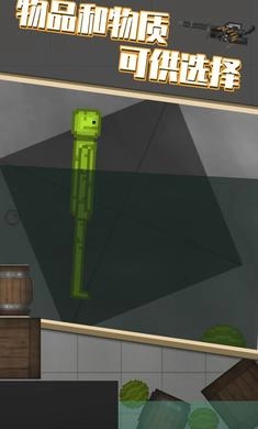 2、左上角按钮,这里有不同的人物、武器、炸弹、刀剑、注射器、装甲等等资源供玩家们体验;