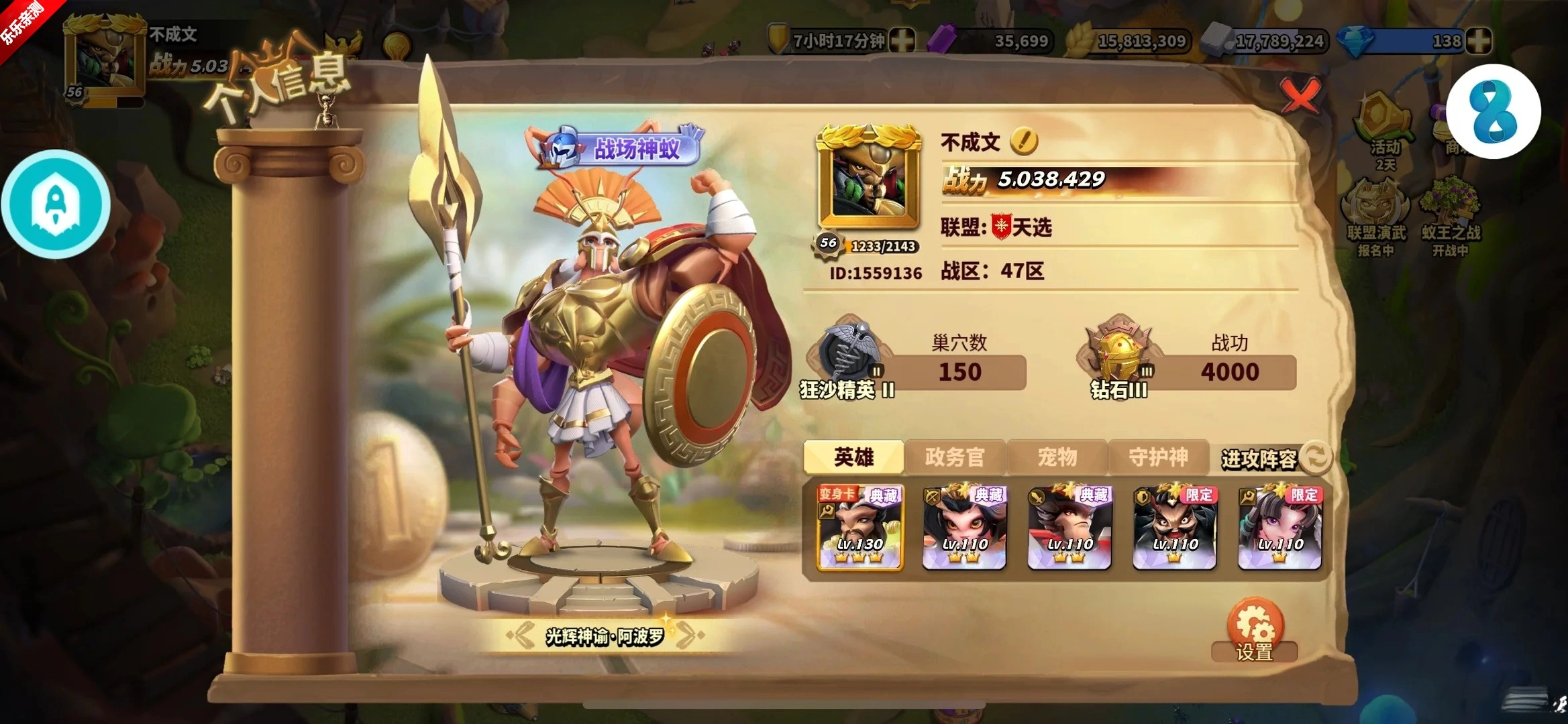 恢复\防御性蚁人(个人感觉防御系t0的存在)新手免费获得。明显的战力属性技能方面高于三星,其三星没有办法能匹敌的在于右小角的可拆战法、可研学蚁人加入不同的战法根据武将的主动技能搭配在实战中更加强化蚁人的总结实力。