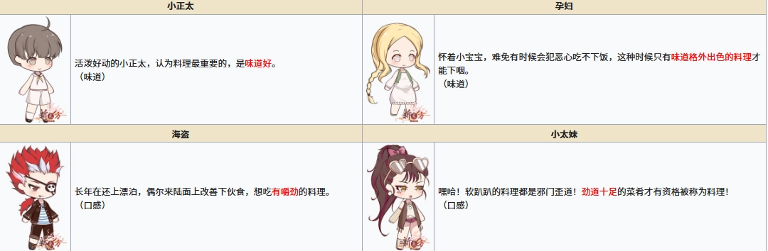 利用食材反复制作菜品还可以提升它的4围属性(味道、口感、香味、外观),不同属性会影响该菜在餐厅中的经营效率