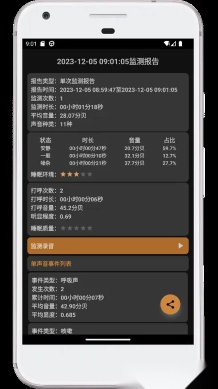 3、精准的声音识别:运用先进的算法技术,能够精准识别睡眠过程中的各类声音事件,保证所获取数据的准确性;
