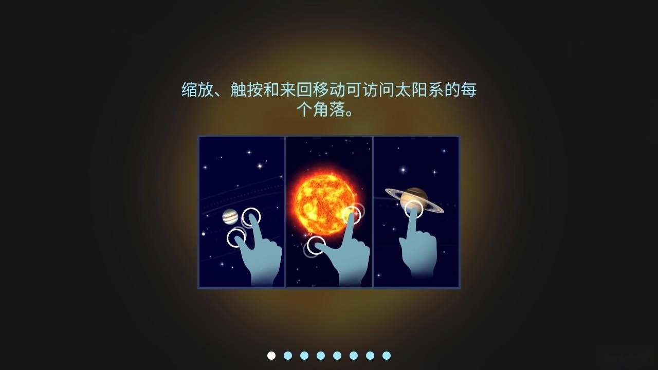 2、通过缩放、触按和来回移动可访问太阳系的每个角落。当你缩小到整个太阳系时,时间将变快,放大到一个星体时,时间将变慢。