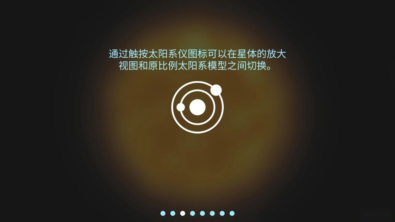 3、通过触按太阳系仪图标可以在星体的放大试图和原比例太阳系模型之间切换。